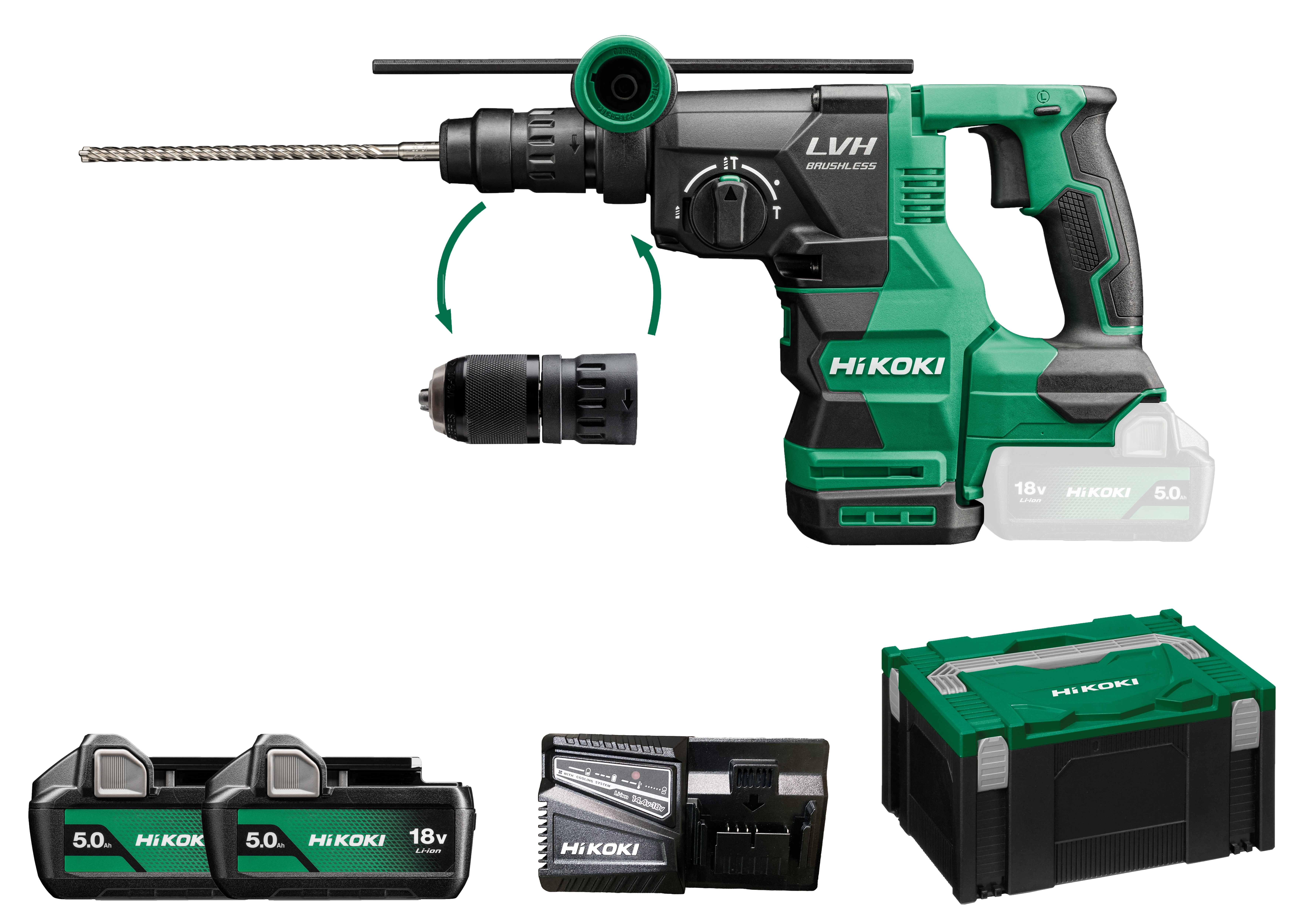 Produktinformationen "HIKOKI DH18DC(5.0) (HSC III) 18V Akku Bohr-& Meißelhammer (Brushless) 18V 2x5Ah"