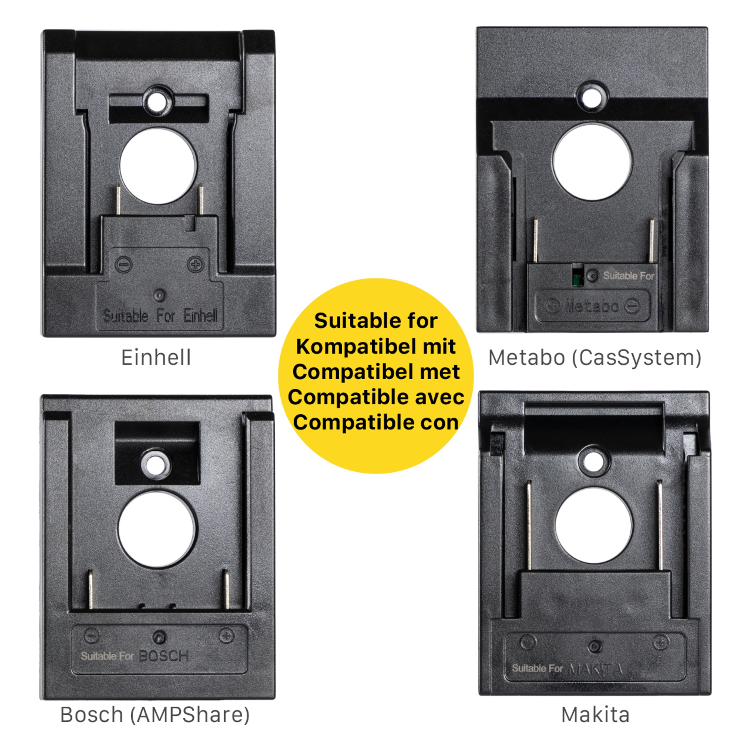 Im Lieferumfang sind folgende Adapter enthalten, die für folgende Elektrowerkzeugakkus geeignet sind: