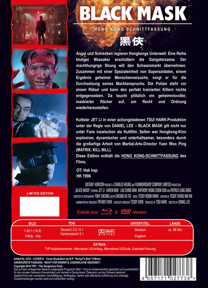 BLACK MASK Mediabook (Blu-Ray+DVD) HongKong Schnittfassung *Limited 333 Edition* von NSM
