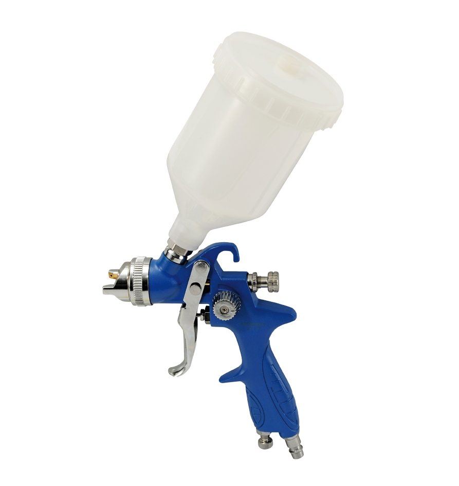 • Die HVLP-Bauart (High Volume Low Pressure = hohes Volumen, niedriger Druck) ermöglicht umweltschonendes Arbeiten durch geringen Spritznebel.