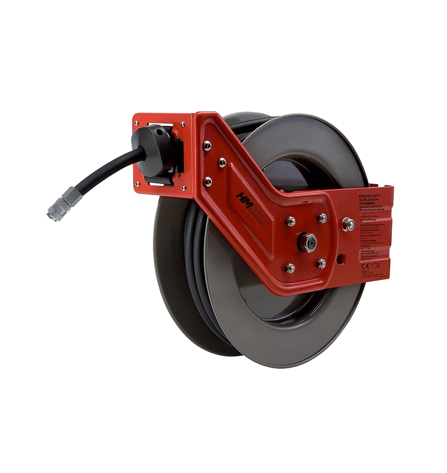 Die Druckluft-Schlauchtrommel von HM Müllner hat eine automatische Schlauchaufrollung.