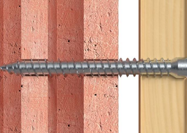 Das Hoch-Tief-Gewinde an der Schraubenspitze sowie zusätzliche Fräsrippen reduzieren das Eindrehmoment und ermöglichen eine Kräfte schonende Montage.