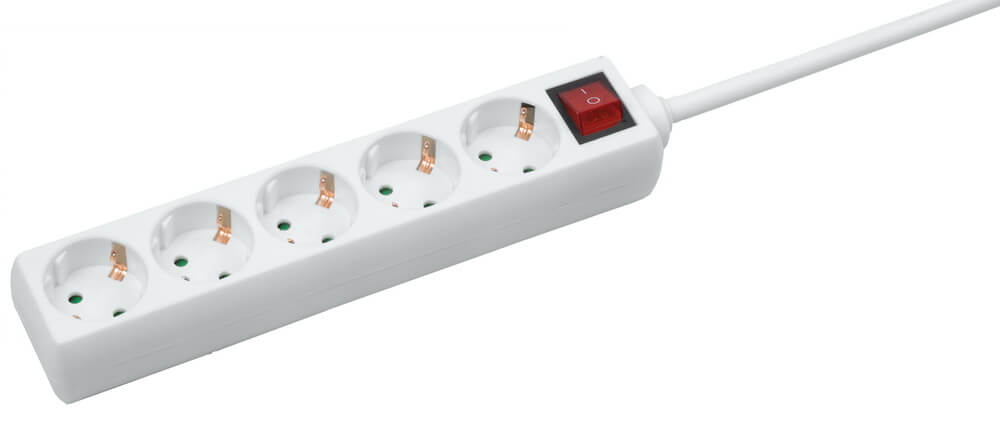 Produktinformationen "Steckdosenleiste 5-fach 1,4m IP20 weiß (m. Schalter) 230V 16A H05"